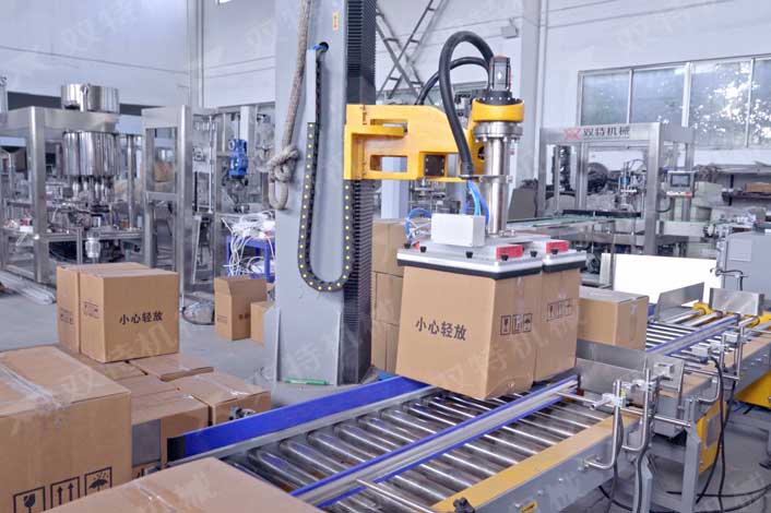 機器人碼垛系統主要針對包裝線的后道碼垛而設計,機器本身占地小,重量輕,功能全面,可以再不同的環境下使用。